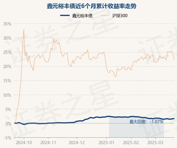 证券之星消息,3月21日,鑫元裕丰债最新单位净值为1.095元,累计净值为1.105元,较前一交易日上涨0.0%。历史数据显示该基金近1个月下跌0.22%,近3个月下跌0.53%,近6个月上涨1.57%,近1年上涨3.9%。该基金近6个月的累计收益率走势如下图:
