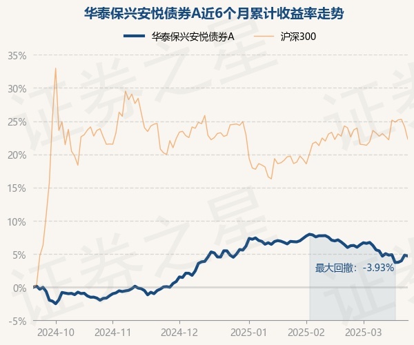 证券之星消息,3月21日,华泰保兴安悦债券A最新单位净值为1.1316元,累计净值为1.2977元,较前一交易日下跌0.13%。历史数据显示该基金近1个月下跌1.63%,近3个月下跌0.75%,近6个月上涨4.69%,近1年上涨11.53%。该基金近6个月的累计收益率走势如下图: