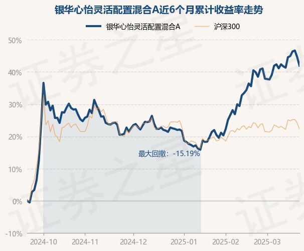 证券之星消息,3月21日,银华心怡灵活配置混合A最新单位净值为2.7658元,累计净值为2.9388元,较前一交易日下跌1.85%。历史数据显示该基金近1个月上涨1.02%,近3个月上涨16.54%,近6个月上涨41.97%,近1年上涨23.78%。该基金近6个月的累计收益率走势如下图: