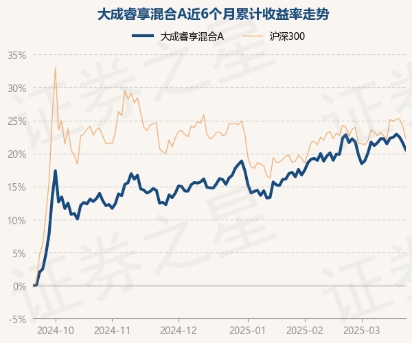 证券之星消息,3月21日,大成睿享混合A最新单位净值为1.5862元,累计净值为1.8005元,较前一交易日下跌0.88%。历史数据显示该基金近1个月下跌1.45%,近3个月上涨3.9%,近6个月上涨20.57%,近1年上涨16.07%。该基金近6个月的累计收益率走势如下图: