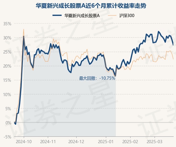 证券之星消息,3月21日,华夏新兴成长股票A最新单位净值为0.7563元,累计净值为0.7563元,较前一交易日下跌1.34%。历史数据显示该基金近1个月下跌2.88%,近3个月上涨3.82%,近6个月上涨27.39%,近1年上涨15.43%。该基金近6个月的累计收益率走势如下图: