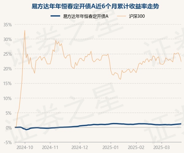 证券之星消息,3月21日,易方达年年恒春定开债A最新单位净值为1.0184元,累计净值为1.1521元,较前一交易日上涨0.06%。历史数据显示该基金近1个月上涨0.2%,近3个月上涨0.22%,近6个月上涨1.2%,近1年上涨3.23%。该基金近6个月的累计收益率走势如下图: