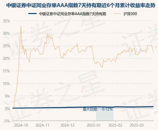 证券之星消息,3月21日,中银证券中证同业存单AAA指数7天持有期最新单位净值为1.0265元,累计净值为1.0265元,较前一交易日上涨0.01%。历史数据显示该基金近1个月上涨0.15%,近3个月上涨0.2%,近6个月上涨0.63%,近1年上涨1.48%。该基金近6个月的累计收益率走势如下图: