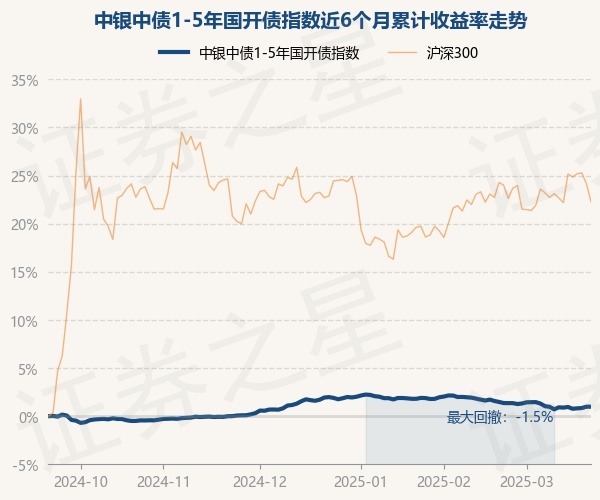 证券之星消息,3月21日,中银中债1-5年国开债指数最新单位净值为1.0803元,累计净值为1.1473元,较前一交易日上涨0.0%。历史数据显示该基金近1个月下跌0.53%,近3个月下跌0.98%,近6个月上涨0.93%,近1年上涨3.78%。该基金近6个月的累计收益率走势如下图: