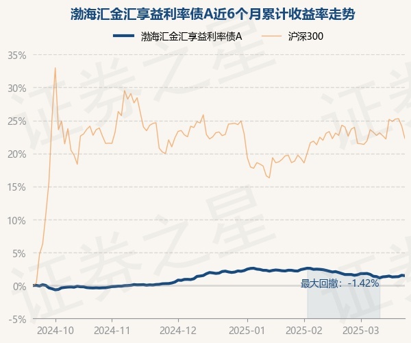 证券之星消息,3月21日,渤海汇金汇享益利率债A最新单位净值为1.0344元,累计净值为1.0494元,较前一交易日下跌0.06%。历史数据显示该基金近1个月下跌0.32%,近3个月下跌0.61%,近6个月上涨1.48%,近1年上涨4.28%。该基金近6个月的累计收益率走势如下图: