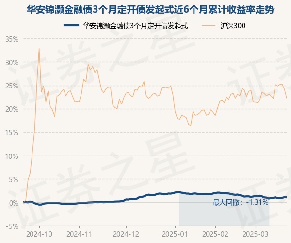 证券之星消息,3月21日,华安锦灏金融债3个月定开债发起式最新单位净值为1.0323元,累计净值为1.1213元,较前一交易日下跌0.02%。历史数据显示该基金近1个月下跌0.32%,近3个月下跌0.7%,近6个月上涨1.05%,近1年上涨3.32%。该基金近6个月的累计收益率走势如下图: