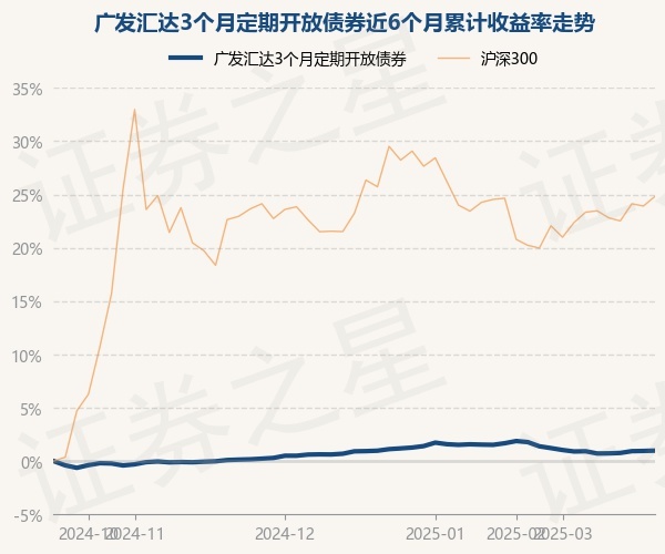 证券之星消息,3月21日,广发汇达3个月定期开放债券最新单位净值为1.021元,累计净值为1.1517元,较前一交易日上涨0.02%。历史数据显示该基金近1个月下跌0.43%,近3个月下跌0.24%,近6个月上涨0.95%,近1年上涨4.15%。该基金近6个月的累计收益率走势如下图: