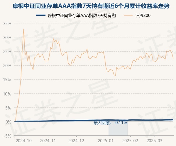 摩根中证同业存单AAA指数7天持有期为指数型-固收基金,根据最新一期基金季报显示,该基金资产配置:无股票类资产,债券占净值比87.83%,现金占净值比0.02%。