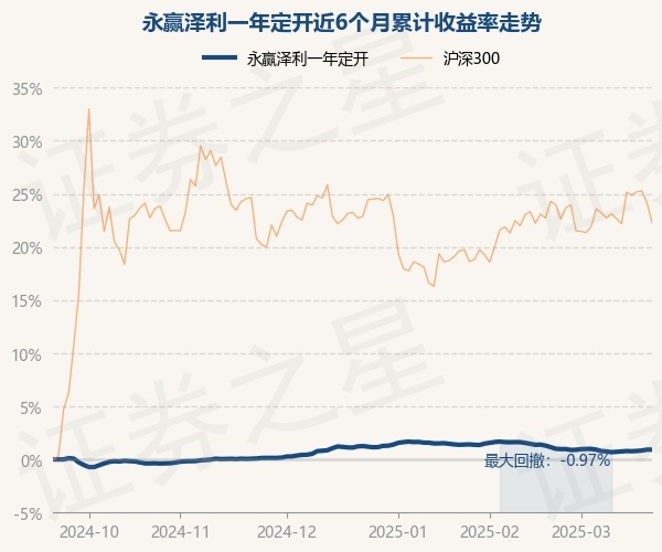 证券之星消息,3月21日,永赢泽利一年定开最新单位净值为1.0809元,累计净值为1.1589元,较前一交易日上涨0.0%。历史数据显示该基金近1个月下跌0.21%,近3个月下跌0.28%,近6个月上涨0.94%,近1年上涨2.9%。该基金近6个月的累计收益率走势如下图: