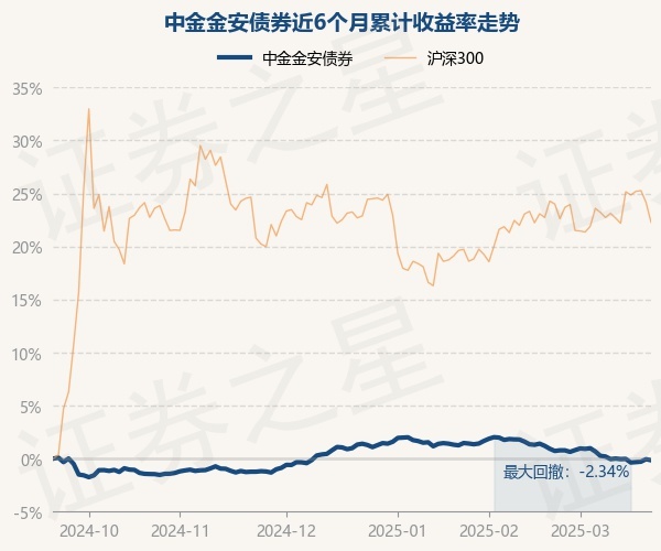 证券之星消息,3月21日,中金金安债券最新单位净值为1.0151元,累计净值为1.0501元,较前一交易日下跌0.1%。历史数据显示该基金近1个月下跌1.07%,近3个月下跌1.46%,近6个月下跌0.15%,近1年上涨3.7%。该基金近6个月的累计收益率走势如下图:
