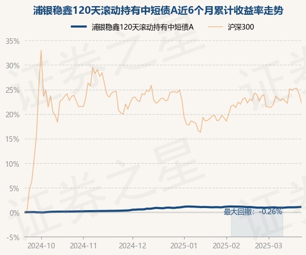 证券之星消息,3月21日,浦银稳鑫120天滚动持有中短债A最新单位净值为1.0935元,累计净值为1.0935元,较前一交易日上涨0.01%。历史数据显示该基金近1个月上涨0.08%,近3个月上涨0.17%,近6个月上涨1.07%,近1年上涨2.45%。该基金近6个月的累计收益率走势如下图: