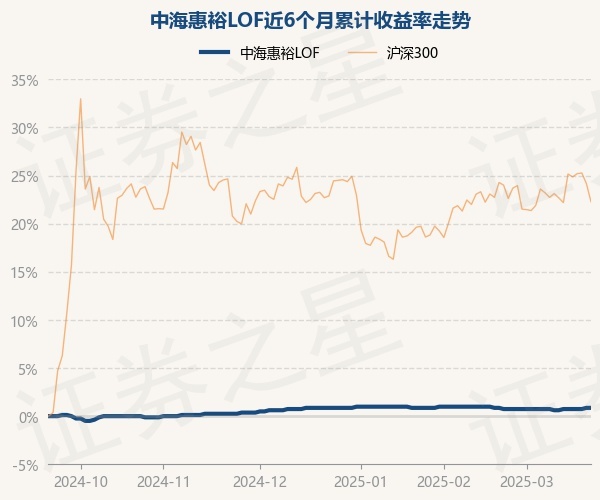 证券之星消息,3月21日,中海惠裕LOF最新单位净值为0.82元,累计净值为1.524元,较前一交易日上涨0.0%。历史数据显示该基金近1个月上涨0.0%,近3个月上涨0.0%,近6个月上涨0.86%,近1年上涨2.5%。该基金近6个月的累计收益率走势如下图:
