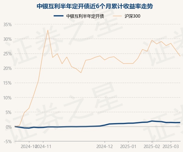 证券之星消息,3月21日,中银互利半年定开债最新单位净值为1.2294元,累计净值为1.2814元,较前一交易日上涨0.02%。历史数据显示该基金近1个月下跌0.31%,近3个月上涨0.42%,近6个月上涨1.36%,近1年上涨3.63%。该基金近6个月的累计收益率走势如下图: