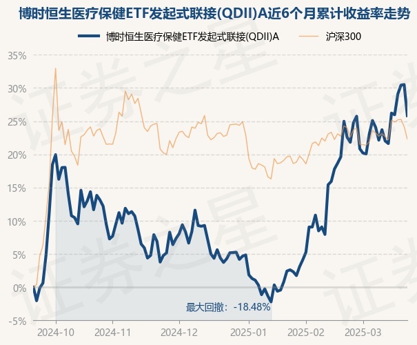 证券之星消息,3月21日,博时恒生医疗保健ETF发起式联接(QDII)A最新单位净值为0.7436元,累计净值为0.7436元,较前一交易日下跌3.59%。历史数据显示该基金近1个月上涨0.68%,近3个月上涨21.31%,近6个月上涨25.82%,近1年上涨21.6%。该基金近6个月的累计收益率走势如下图: