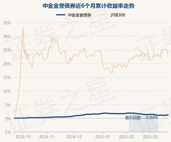 证券之星消息,3月21日,中金金誉债券最新单位净值为1.0126元,累计净值为1.066元,较前一交易日上涨0.02%。历史数据显示该基金近1个月下跌0.25%,近3个月下跌0.3%,近6个月上涨1.22%,近1年上涨2.16%。该基金近6个月的累计收益率走势如下图: