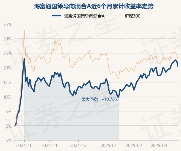 证券之星消息,3月21日,海富通国策导向混合A最新单位净值为1.9369元,累计净值为2.976元,较前一交易日下跌1.6%。历史数据显示该基金近1个月上涨0.57%,近3个月上涨6.35%,近6个月上涨20.07%,近1年上涨10.88%。该基金近6个月的累计收益率走势如下图: