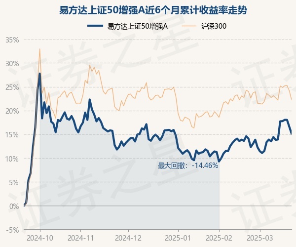 证券之星消息,3月21日,易方达上证50增强A最新单位净值为1.8587元,累计净值为3.8487元,较前一交易日下跌1.23%。历史数据显示该基金近1个月上涨0.49%,近3个月上涨1.27%,近6个月上涨15.16%,近1年上涨4.42%。该基金近6个月的累计收益率走势如下图: