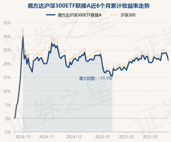 证券之星消息,3月21日,易方达沪深300ETF联接A最新单位净值为1.5481元,累计净值为1.5481元,较前一交易日下跌1.45%。历史数据显示该基金近1个月下跌1.51%,近3个月下跌0.1%,近6个月上涨21.14%,近1年上涨11.55%。该基金近6个月的累计收益率走势如下图: