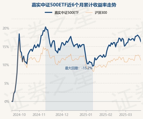 证券之星消息,3月21日,嘉实中证500ETF最新单位净值为2.383元,累计净值为1.9677元,较前一交易日下跌1.45%。历史数据显示该基金近1个月下跌1.43%,近3个月上涨0.89%,近6个月上涨32.46%,近1年上涨10.72%。该基金近6个月的累计收益率走势如下图: