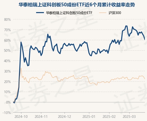 证券之星消息,3月21日,华泰柏瑞上证科创板50成份ETF最新单位净值为1.0738元,累计净值为0.7498元,较前一交易日下跌2.05%。历史数据显示该基金近1个月下跌4.81%,近3个月上涨2.97%,近6个月上涨60.46%,近1年上涨29.05%。该基金近6个月的累计收益率走势如下图: