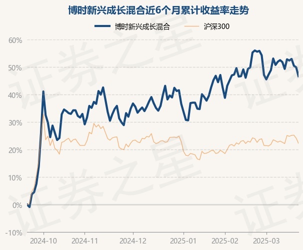 证券之星消息,3月21日,博时新兴成长混合最新单位净值为1.005元,累计净值为4.341元,较前一交易日下跌2.14%。历史数据显示该基金近1个月下跌5.55%,近3个月上涨2.45%,近6个月上涨46.72%,近1年上涨17.41%。该基金近6个月的累计收益率走势如下图:
