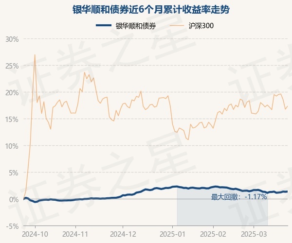 证券之星消息,3月24日,银华顺和债券最新单位净值为1.0421元,累计净值为1.0601元,较前一交易日上涨0.04%。历史数据显示该基金近1个月下跌0.12%,近3个月下跌0.56%,近6个月上涨1.37%,近1年上涨3.82%。该基金近6个月的累计收益率走势如下图:
