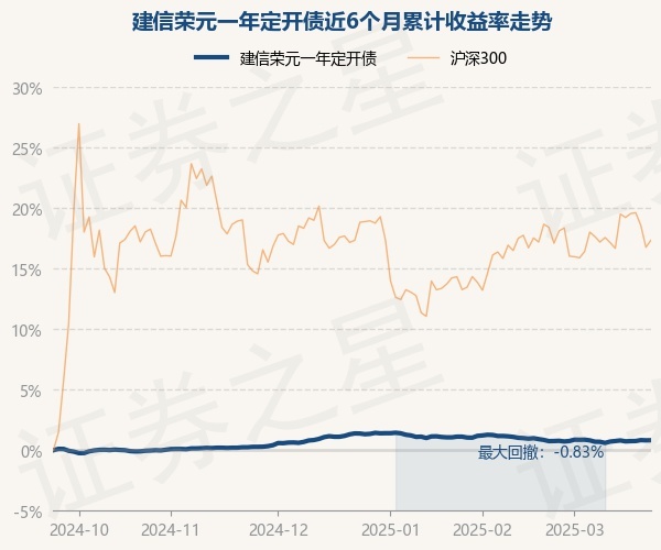 证券之星消息,3月24日,建信荣元一年定开债最新单位净值为1.0779元,累计净值为1.1349元,较前一交易日上涨0.01%。历史数据显示该基金近1个月上涨0.07%,近3个月下跌0.55%,近6个月上涨0.82%,近1年上涨2.72%。该基金近6个月的累计收益率走势如下图: