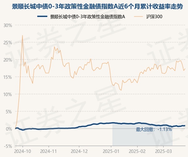 证券之星消息,3月24日,景顺长城中债0-3年政策性金融债指数A最新单位净值为1.0426元,累计净值为1.062元,较前一交易日上涨0.04%。历史数据显示该基金近1个月下跌0.03%,近3个月下跌0.64%,近6个月上涨1.85%,近1年上涨3.31%。该基金近6个月的累计收益率走势如下图: