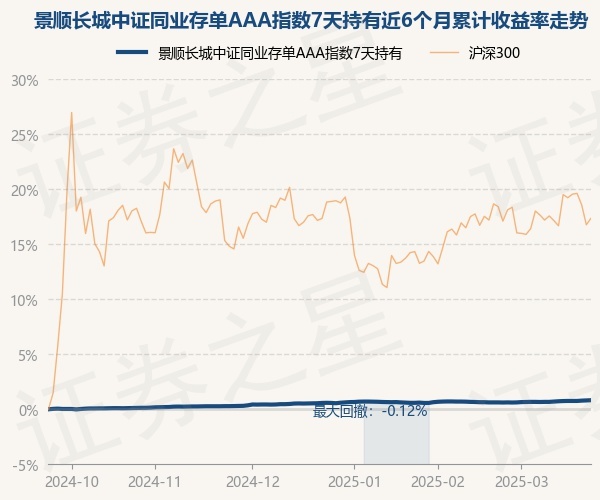 证券之星消息,3月24日,景顺长城中证同业存单AAA指数7天持有最新单位净值为1.065元,累计净值为1.065元,较前一交易日上涨0.02%。历史数据显示该基金近1个月上涨0.2%,近3个月上涨0.24%,近6个月上涨0.82%,近1年上涨1.95%。该基金近6个月的累计收益率走势如下图: