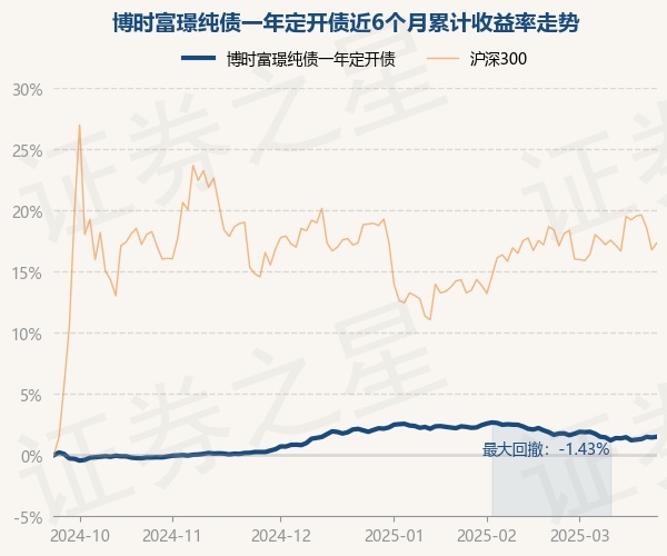 证券之星消息,3月24日,博时富璟纯债一年定开债最新单位净值为1.0258元,累计净值为1.1099元,较前一交易日上涨0.06%。历史数据显示该基金近1个月下跌0.16%,近3个月下跌0.51%,近6个月上涨1.5%,近1年上涨3.57%。该基金近6个月的累计收益率走势如下图: