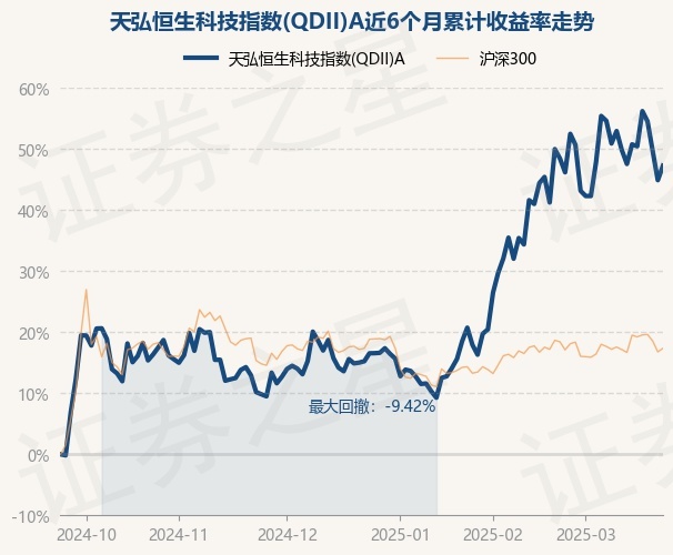 证券之星消息,3月24日,天弘恒生科技指数(QDII)A最新单位净值为0.8358元,累计净值为0.8358元,较前一交易日上涨1.64%。历史数据显示该基金近1个月下跌0.78%,近3个月上涨26.37%,近6个月上涨47.28%,近1年上涨65.97%。该基金近6个月的累计收益率走势如下图: