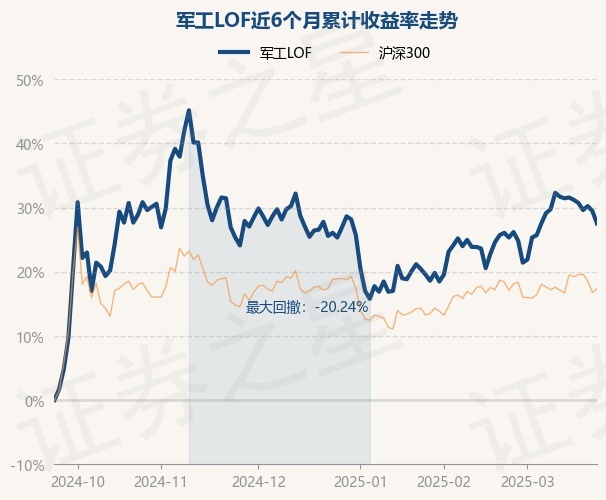 证券之星消息,3月24日,军工LOF最新单位净值为1.042元,累计净值为1.73元,较前一交易日下跌1.51%。历史数据显示该基金近1个月上涨1.17%,近3个月上涨1.17%,近6个月上涨27.54%,近1年上涨15.52%。该基金近6个月的累计收益率走势如下图: