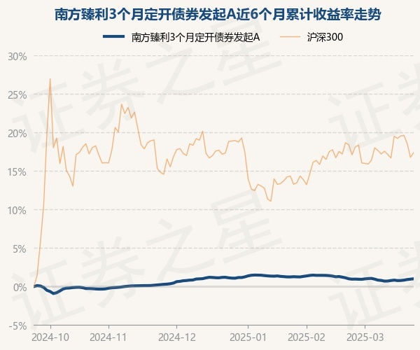 证券之星消息,3月24日,南方臻利3个月定开债券发起A最新单位净值为1.0391元,累计净值为1.1277元,较前一交易日上涨0.05%。历史数据显示该基金近1个月上涨0.0%,近3个月下跌0.12%,近6个月上涨1.0%,近1年上涨2.81%。该基金近6个月的累计收益率走势如下图: