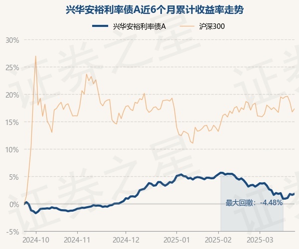证券之星消息,3月24日,兴华安裕利率债A最新单位净值为1.0839元,累计净值为1.1319元,较前一交易日上涨0.18%。历史数据显示该基金近1个月下跌1.29%,近3个月下跌1.69%,近6个月上涨1.82%,近1年上涨7.08%。该基金近6个月的累计收益率走势如下图: