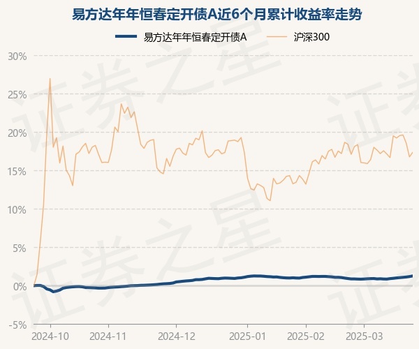 证券之星消息,3月24日,易方达年年恒春定开债A最新单位净值为1.0192元,累计净值为1.1529元,较前一交易日上涨0.08%。历史数据显示该基金近1个月上涨0.33%,近3个月上涨0.28%,近6个月上涨1.26%,近1年上涨3.3%。该基金近6个月的累计收益率走势如下图: