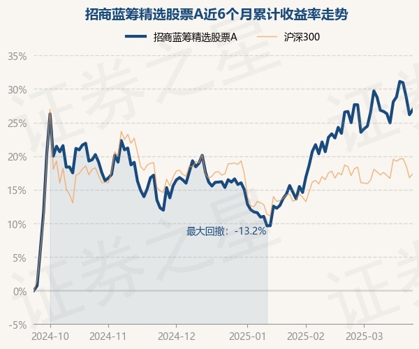 证券之星消息,3月24日,招商蓝筹精选股票A最新单位净值为0.7135元,累计净值为0.7135元,较前一交易日上涨0.59%。历史数据显示该基金近1个月上涨0.21%,近3个月上涨8.95%,近6个月上涨26.91%,近1年上涨24.17%。该基金近6个月的累计收益率走势如下图:
