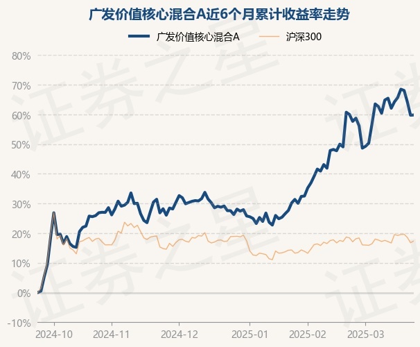 证券之星消息,3月24日,广发价值核心混合A最新单位净值为0.7479元,累计净值为0.7479元,较前一交易日上涨0.05%。历史数据显示该基金近1个月下跌0.11%,近3个月上涨25.28%,近6个月上涨59.81%,近1年上涨45.34%。该基金近6个月的累计收益率走势如下图: