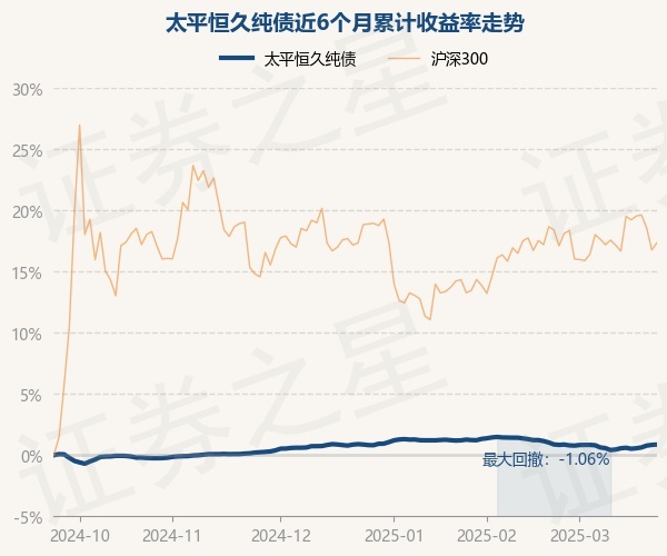 证券之星消息,3月24日,太平恒久纯债最新单位净值为1.0263元,累计净值为1.4213元,较前一交易日上涨0.03%。历史数据显示该基金近1个月下跌0.01%,近3个月上涨0.0%,近6个月上涨3.32%,近1年上涨3.57%。该基金近6个月的累计收益率走势如下图: