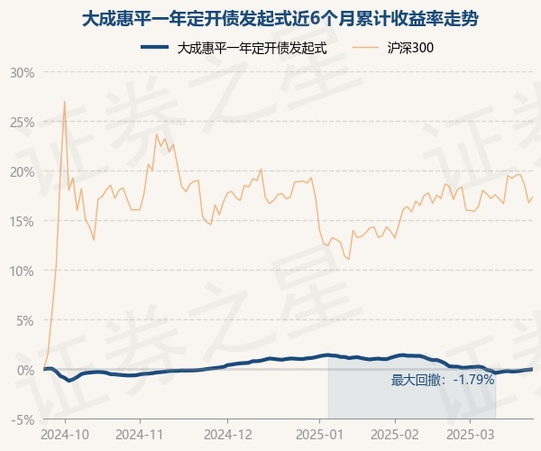 证券之星消息,3月24日,大成惠平一年定开债发起式最新单位净值为1.041元,累计净值为1.147元,较前一交易日上涨0.05%。历史数据显示该基金近1个月下跌0.3%,近3个月下跌1.06%,近6个月下跌0.01%,近1年上涨2.64%。该基金近6个月的累计收益率走势如下图: