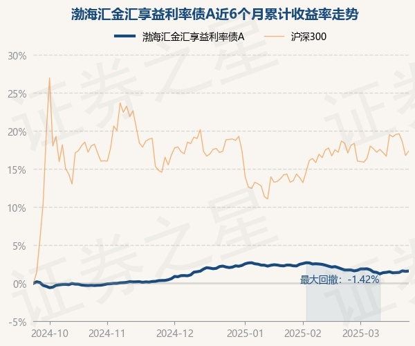 证券之星消息,3月24日,渤海汇金汇享益利率债A最新单位净值为1.0348元,累计净值为1.0498元,较前一交易日上涨0.04%。历史数据显示该基金近1个月下跌0.14%,近3个月下跌0.52%,近6个月上涨1.6%,近1年上涨4.32%。该基金近6个月的累计收益率走势如下图: