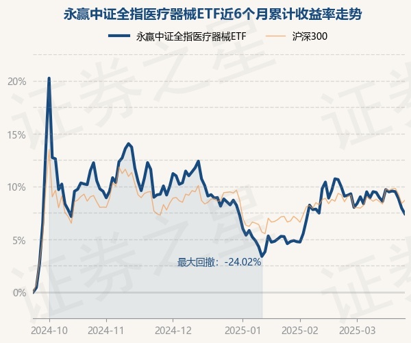 证券之星消息,3月24日,永赢中证全指医疗器械ETF最新单位净值为0.4862元,累计净值为0.4862元,较前一交易日下跌0.92%。历史数据显示该基金近1个月下跌4.25%,近3个月下跌2.39%,近6个月上涨14.83%,近1年下跌8.39%。该基金近6个月的累计收益率走势如下图: