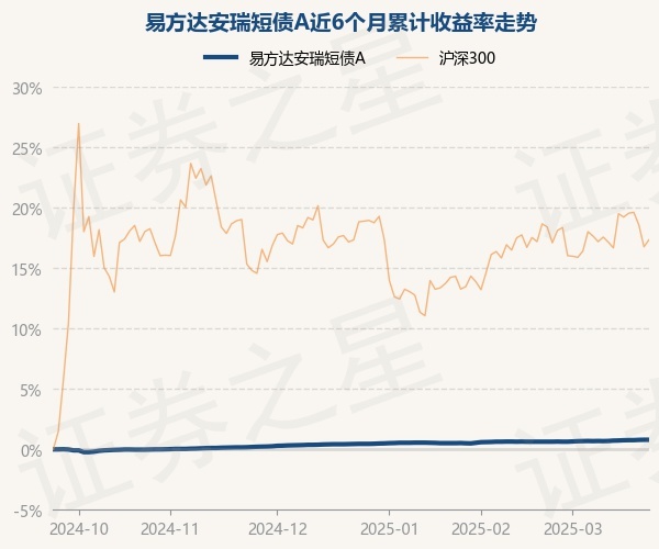 证券之星消息,3月24日,易方达安瑞短债A最新单位净值为1.0046元,累计净值为1.1726元,较前一交易日上涨0.0%。历史数据显示该基金近1个月上涨0.18%,近3个月上涨0.36%,近6个月上涨0.82%,近1年上涨1.93%。该基金近6个月的累计收益率走势如下图: