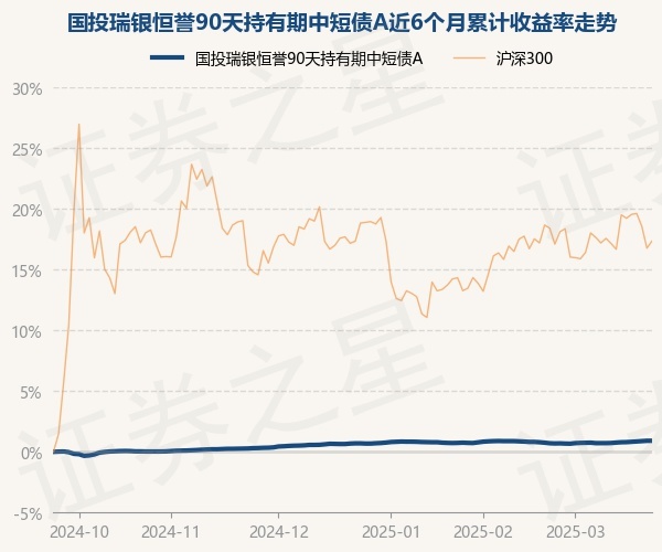 证券之星消息,3月24日,国投瑞银恒誉90天持有期中短债A最新单位净值为1.0971元,累计净值为1.0971元,较前一交易日上涨0.0%。历史数据显示该基金近1个月上涨0.23%,近3个月上涨0.24%,近6个月上涨0.94%,近1年上涨2.25%。该基金近6个月的累计收益率走势如下图: