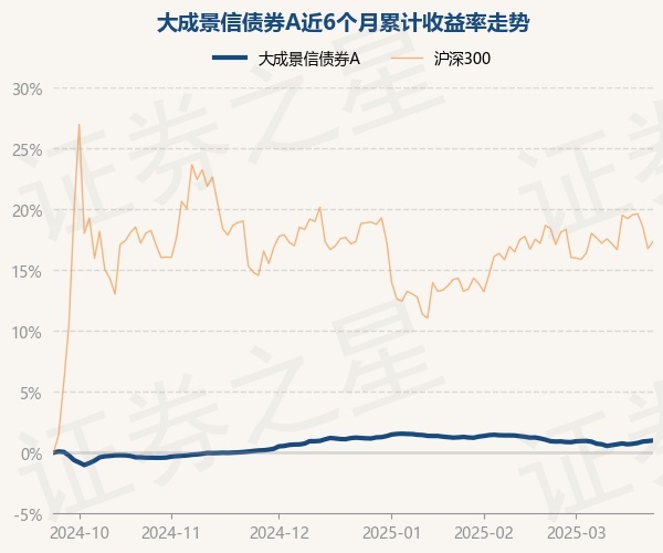证券之星消息,3月24日,大成景信债券A最新单位净值为1.0323元,累计净值为1.0523元,较前一交易日上涨0.05%。历史数据显示该基金近1个月上涨0.06%,近3个月下跌0.2%,近6个月上涨1.0%,近1年上涨3.09%。该基金近6个月的累计收益率走势如下图: