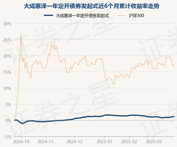 证券之星消息,3月24日,大成惠泽一年定开债券发起式最新单位净值为1.0282元,累计净值为1.1334元,较前一交易日上涨0.06%。历史数据显示该基金近1个月上涨0.03%,近3个月下跌0.05%,近6个月上涨1.18%,近1年上涨3.39%。该基金近6个月的累计收益率走势如下图:
