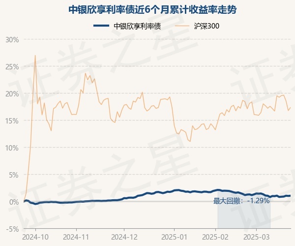 证券之星消息,3月24日,中银欣享利率债最新单位净值为1.0347元,累计净值为1.1412元,较前一交易日上涨0.04%。历史数据显示该基金近1个月下跌0.13%,近3个月下跌0.58%,近6个月上涨1.04%,近1年上涨3.36%。该基金近6个月的累计收益率走势如下图: