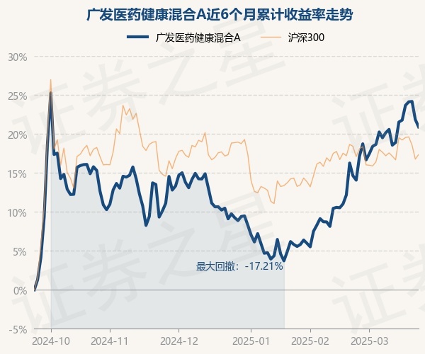 证券之星消息,3月24日,广发医药健康混合A最新单位净值为0.4845元,累计净值为0.4845元,较前一交易日下跌0.78%。历史数据显示该基金近1个月上涨5.46%,近3个月上涨10.16%,近6个月上涨20.91%,近1年上涨11.28%。该基金近6个月的累计收益率走势如下图: