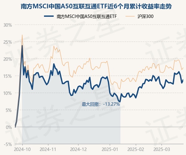 证券之星消息,3月24日,南方MSCI中国A50互联互通ETF最新单位净值为0.8183元,累计净值为0.8343元,较前一交易日上涨0.78%。历史数据显示该基金近1个月下跌0.76%,近3个月下跌0.38%,近6个月上涨13.76%,近1年上涨15.27%。该基金近6个月的累计收益率走势如下图: