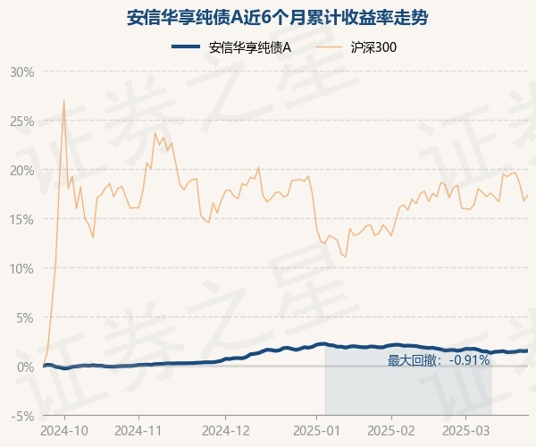 证券之星消息,3月24日,安信华享纯债A最新单位净值为1.0487元,累计净值为1.0767元,较前一交易日上涨0.03%。历史数据显示该基金近1个月下跌0.03%,近3个月下跌0.2%,近6个月上涨1.53%,近1年上涨3.41%。该基金近6个月的累计收益率走势如下图: