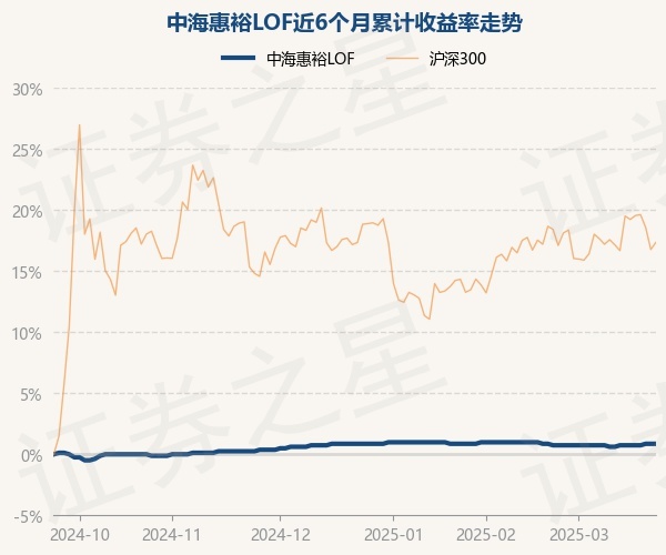 证券之星消息,3月24日,中海惠裕LOF最新单位净值为0.82元,累计净值为1.524元,较前一交易日上涨0.0%。历史数据显示该基金近1个月上涨0.12%,近3个月上涨0.0%,近6个月上涨0.86%,近1年上涨2.5%。该基金近6个月的累计收益率走势如下图: